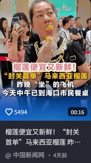 甚至由于免税方面的优惠,来自马来西亚等地的进口榴莲价格也大幅“跳水”,有大量消费者排队购买。
