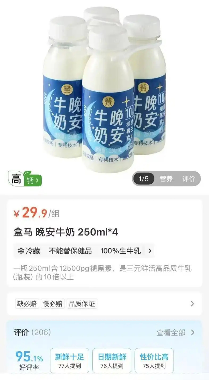 然而,一瓶250毫升“晚安牛奶”瓶身标注的褪黑素含量是0.0125微克/瓶电商平台上,一片褪黑素保健食品约含1至3毫克褪黑素如此算来,一片褪黑素相当于8万瓶至24万瓶“晚安牛奶”褪黑素的含量据媒体报道,此前,三元股份也曾推出过自有品牌的“极致晚安奶”。