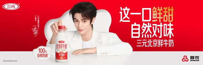 先是签约葛优,以其国民形象锚定品牌与北京文化的深度绑定,前不久又官宣新生代演员丁禹兮成为三元品牌代言人,通过其青春形象与国民认知度,将“三元北京鲜牛奶”的“新鲜”核心卖点,转化为更贴近年轻群体的语言与体验,为品牌注入触达