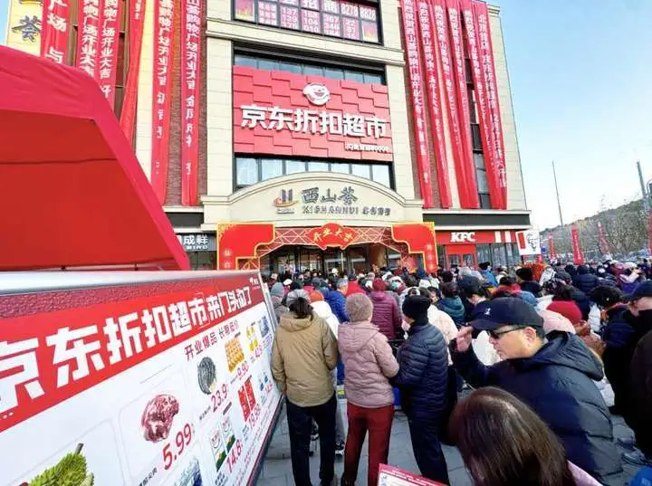 12月17日,京东折扣超市北京首店在门头沟西山荟正式开业,这家约5000平方米的大型折扣超市,凭借“京味儿烟火+极致低价”的核心优势,开业五天创下近20万进店客流的亮眼成绩9.9元/托的鸡蛋以及京东酒坊散白酒、水饺等多款爆品销量飙升,叠加冬至节点的消费热潮,成为京西年末消费市场的一大亮点。