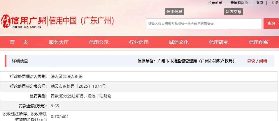 2025年11月24日,信用广州官网公示了一则来源于广州市白云区市场监督管理局的行政处罚消息据报道,广州俪妍化妆品技术有限公司(以下简称“广州俪妍”)因涉嫌生产未经注册的特殊化妆品及标签虚假的化妆品化妆品生产被处以行政处罚,罚款金额高达9.65万元,并没收违法所得及非法财物约7024元。