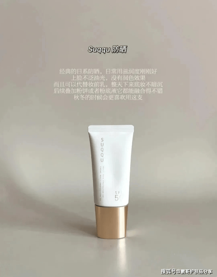 日常通勤+户外长时间都没啥问题,而且后续叠涂底妆也不会打架,肤感和实力并存的一支高倍防晒了,就算是秋冬干皮也能用的一支,防晒力比较强,肤感也更润些第六款:Suqqu防晒经典的日系防晒,日常用滋润度刚刚好,上脸不泛油光,没有润色效果,而且可以代替妆前乳,整天下来底妆不暗沉,后续叠加粉饼或者粉底液它都能融合得不错,秋冬的时候会更喜欢用这支。