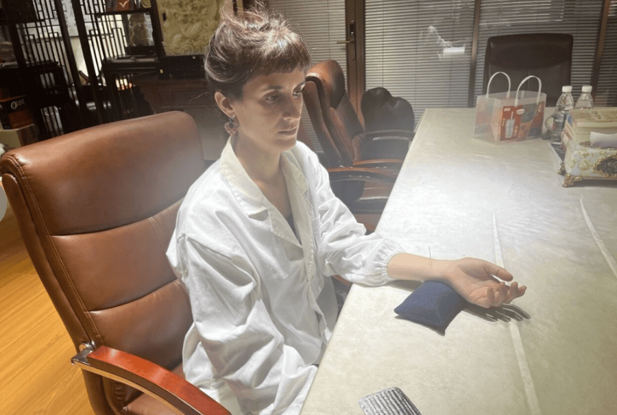 萨布丽娜在体验针灸针法伊朗人易正(Meghdad)的中医梦始于童年时代的中国电影2008年迷上太极拳后,他几经寻访拜师,2016年进入上海中医药大学进修取得硕士学位后,他成为杨氏太极拳第六代传人,并入职岳阳医院国际医疗部。