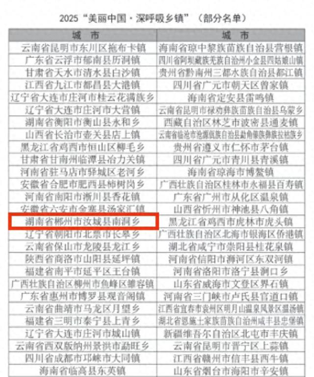 红网时刻新闻12月24日郴州讯(通讯员 唐聪 朱博一)近日,湖南省郴州市汝城县南洞乡凭借卓越的生态环境和绿色发展实践,成功入选2025年度“美丽中国 深呼吸乡镇”,向公众徐徐展卷这幅用山水抒写的康养诗篇。