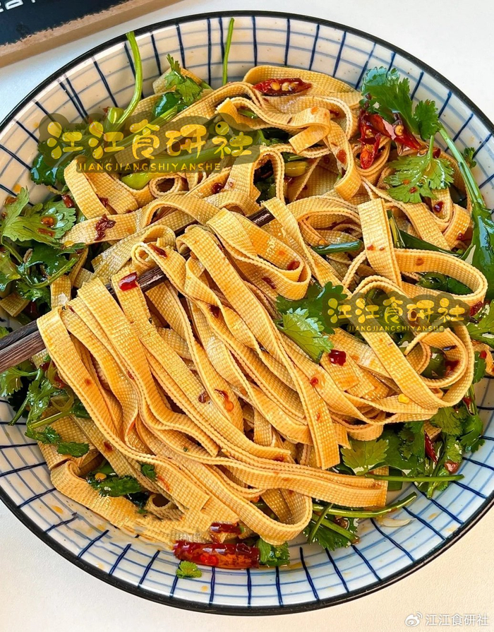 食材:千张:1张(约150克)、香菜:一小把、大蒜:3-4瓣、小米椒:1-2个(可选)做法,核心是“烫”与“冰”:1、千张处理要耐心将整张千张卷起来,切成丝稍微切细一点,口感越好,也更容易入味切好后,用手轻轻抖散。