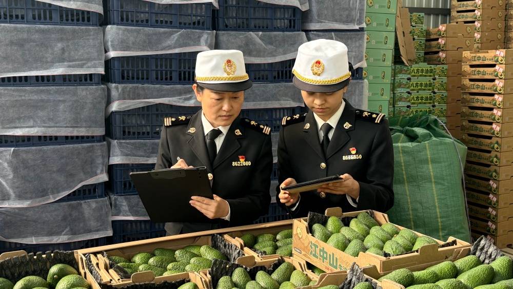 12月23日,腾冲海关驻隆阳办事处对龙陵县即将出口的牛油果开展现场查验,这批共计312箱、1248公斤的牛油果将于近日从昆明长水国际机场发往新加坡、马来西亚作为2024年云南首次出口新加坡的牛油果产品,此次出口不仅提升了出口量,更实现了马来西亚市场零的突破,为“云果出海”版图再添重要成果。