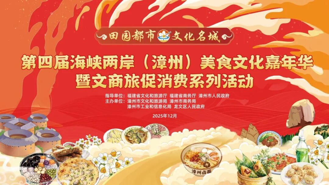 @漳州市民朋友新一轮味蕾轰炸预警已拉满!汇聚海峡两岸风味的舌尖盛宴即将登陆漳州带着马年的热闹劲儿喊你“马上开吃”啦 第四届海峡两岸(漳州)美食文化嘉年华 暨文商旅促消费系列活动 12月26日—28日将在龙文区碧湖生态公园西广场