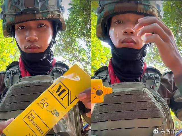 这操作让人看得目瞪口呆然而这还不算完,小哥秉着敬业的精神,边涂脸边介绍产品,看样子对这支防晒霜十分满意由于东南亚的气候原因,当地人大多离不开防晒霜,士兵也不例外但背景里清晰的枪声不断响起,还是让大家替他捏了把汗。