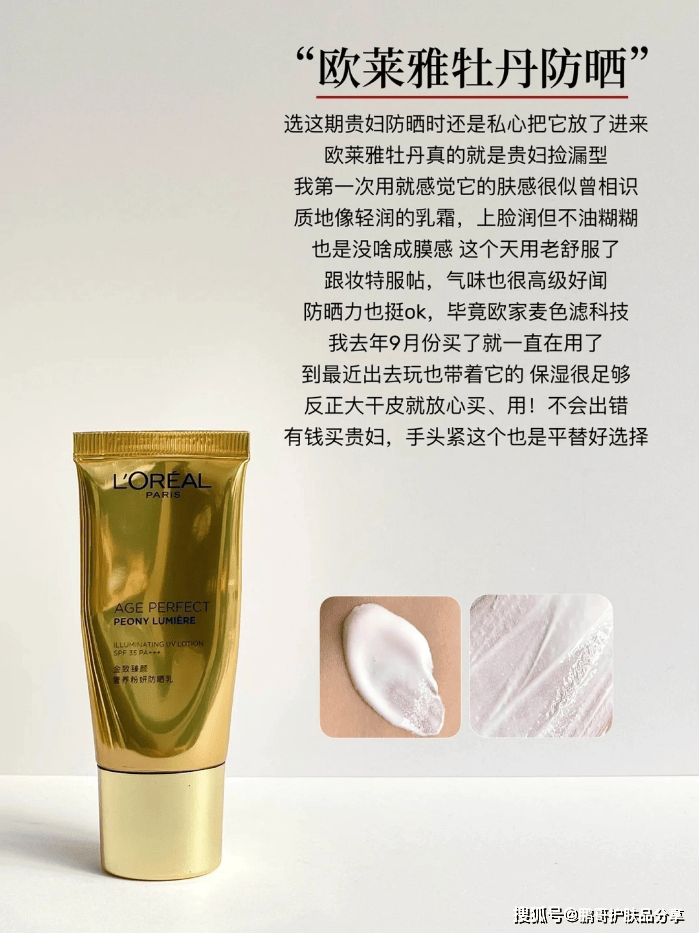 这款防晒霜不仅具有防晒功能,还能养肤,日常洁面就能轻松清洗干净,无需特殊处理第六款:欧莱雅牡丹防晒随着气温的升高,紫外线强度也在不断增强,防晒工作显得尤为重要欧莱雅牡丹防晒霜以其出色的防晒效果和温和的质地,成为了许多人的首选。