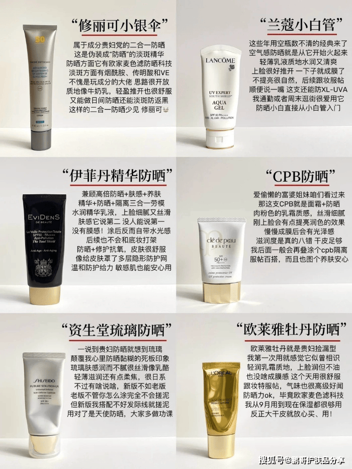 大家好,我是鹏哥,每天坚持分享各种护肤品知识,喜欢的话可以关注我,如果你希望看到哪些护肤品,可以在我的评论区留言不同肤质的防晒到底该怎么选?这6款大牌防晒满足不同的防晒需求有人看中它的肤感,有人看中它的保湿度,还有一些适合妆前打底、户外运动等不同的防晒需求,防晒指数只是一个理论数值,可以当作一个参考,但实际的效果还是在应用中。