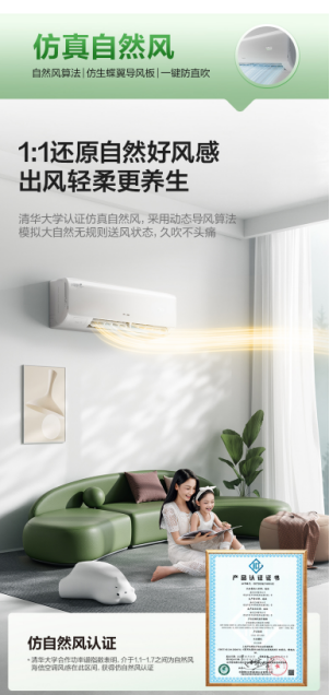 尤为值得一提的是其专业级的防直吹体验海信新风空调深睡宝X3Pro获得了清华大学认证的仿真自然风感它采用动态导风算法,模拟大自然无规则送风状态,搭配独特的蝶翼导风板设计,能有效打散集中冷热气流,实现均匀、柔和的送风。