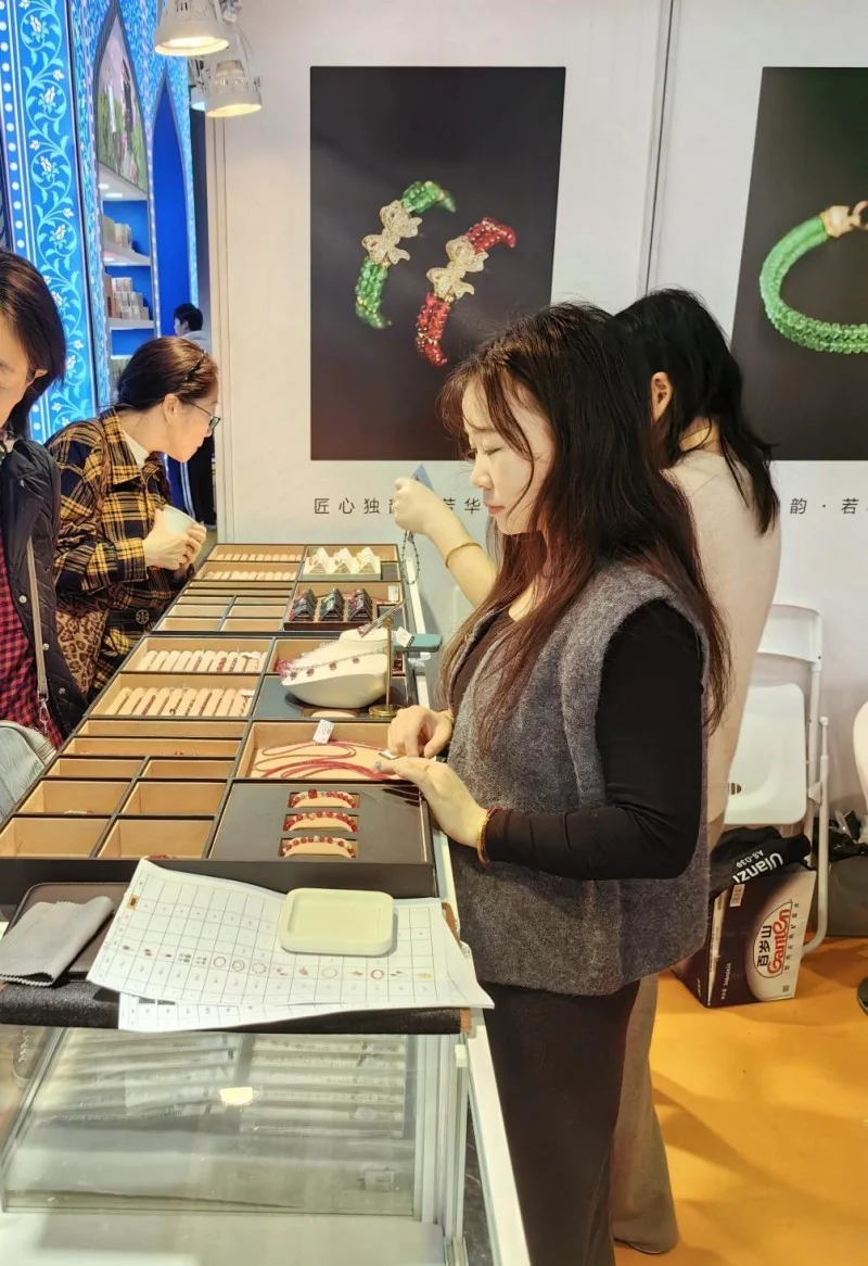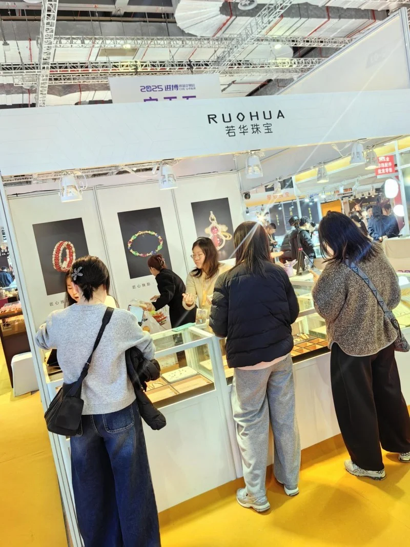 若华珠宝在展览期间,其时尚的款式设计受到不小消费者的青睐,有粉丝更是不远百里来到展会现场选购若华珠宝的新款,这足以证明若华珠宝的款式对于消费者的吸引力。