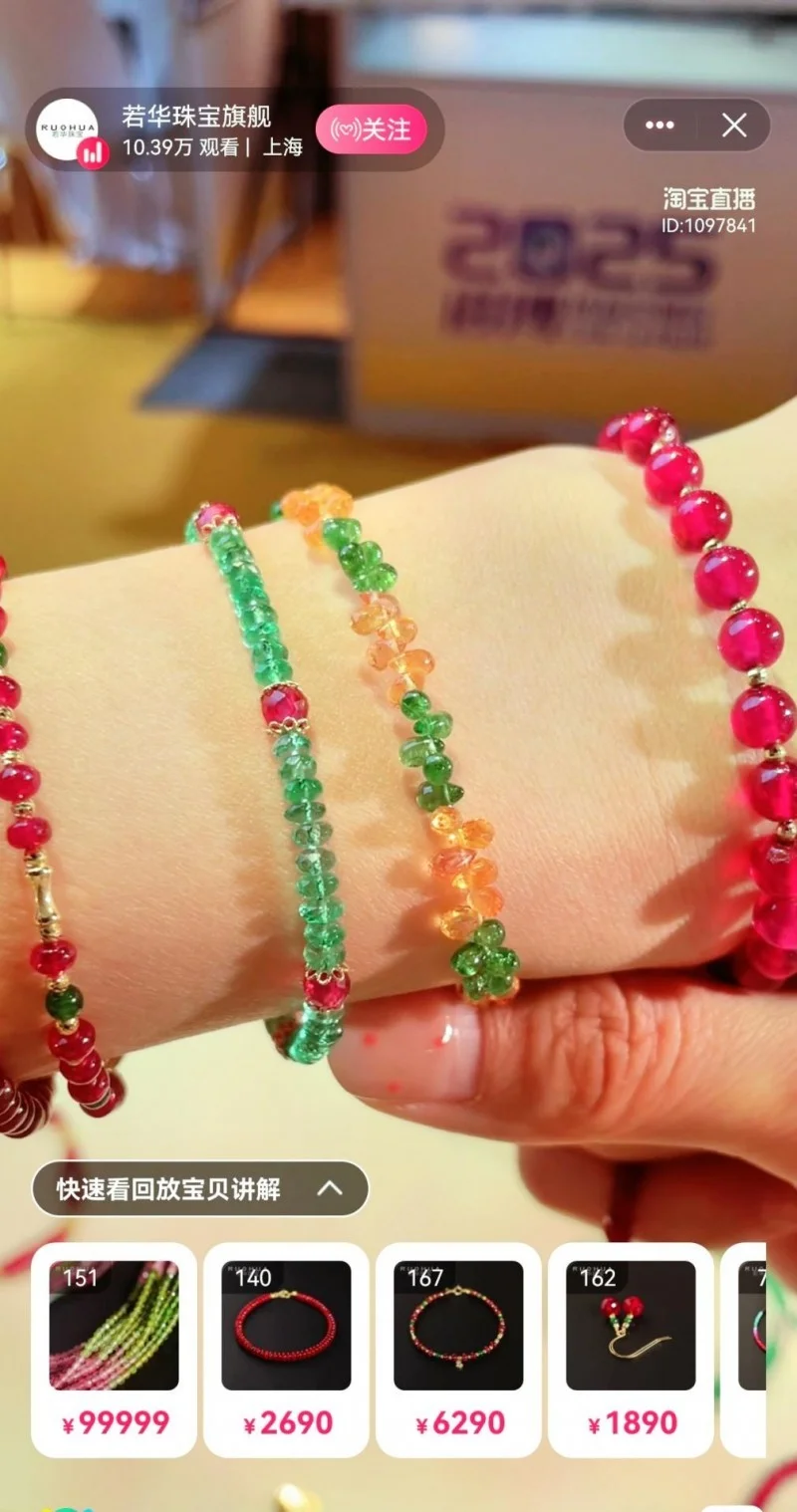 而若华珠宝也是为数不多能够实现线上线下同步销售的知名品牌展会当天除了线下成交,线上也是做出了不小的增长,直播的观看量达到10万+若华珠宝坚守品质,不断创新成立品牌至今已然成为淘宝天猫平台彩宝类目TOP1的品牌(数据摘自2025.12月天猫商家后台生意参谋)行业里的佼佼者。