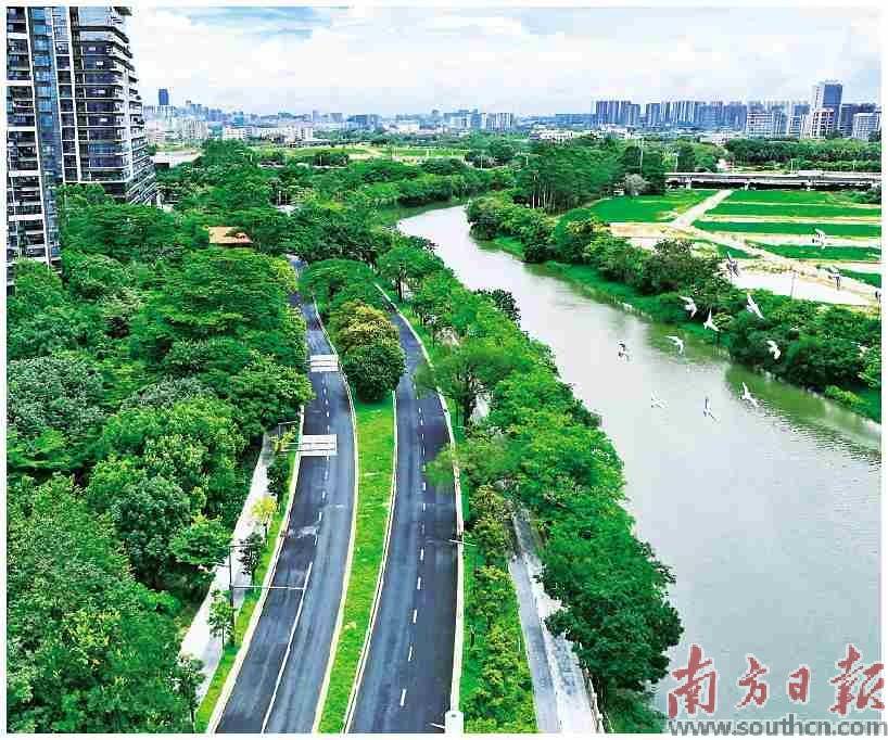 升级改造后的滨河路(南城白马石鼓段),串联起产业园与都市农田南城供图以道路升级重构交通动脉,鸿福路成为一道亮丽风景线;以统筹运营盘活丢荒地,将军洲变身中心区都市田园;用破旧立新改造废弃石场,碧玉湖成了莞版“小九寨沟”……。
