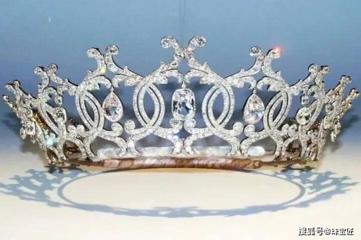 冠冕的主体框架为黄金和铂金材质,款式采用了当时最为流行的俄罗斯Kokoshnik头冠的拱形结构,367颗明亮式切割钻石镶嵌成缎带与月桂枝的造型,独特的镂空与钻石流苏设计,更使得冠冕的款式轻盈、灵动小课堂:。