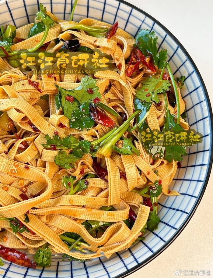 第一道:凉拌香菜千张丝——清爽的“开胃前奏”这道菜,是夏天的遗珠,秋冬的开胃菜。它看似简单,却暗藏玄机。关键在于“烫”的时机和“拌”的手法。做对了,千张丝会变得异常柔韧爽口。