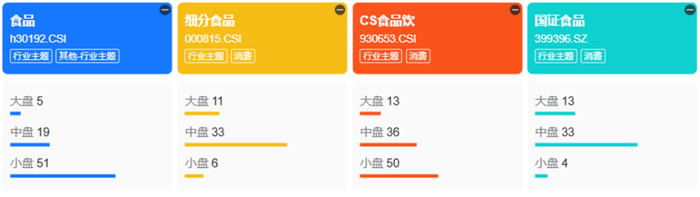 中证细分食品饮料产业主题指数(000815.CSI) 中证食品饮料指数(930653.CSI) 中证全指食品指数(H30192.CSI) 国证食品饮料行业指数(399396.SZ)