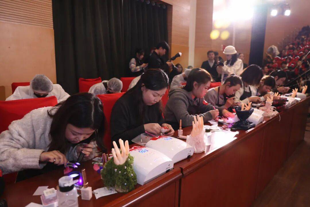 精彩瞬间本届职业技能大赛设有美发、美容化妆、美容美甲、美容纹绣四个赛项,每个赛项均分为学生组和职工组两个组别,以适应不同层次的参赛需求本次大赛由美发美容考评员、行业专家等组成的评委团依据本次比赛评分规则,认真严谨地对参赛选手们的作品进行客观公正的评判,为每名选手的成绩负责。